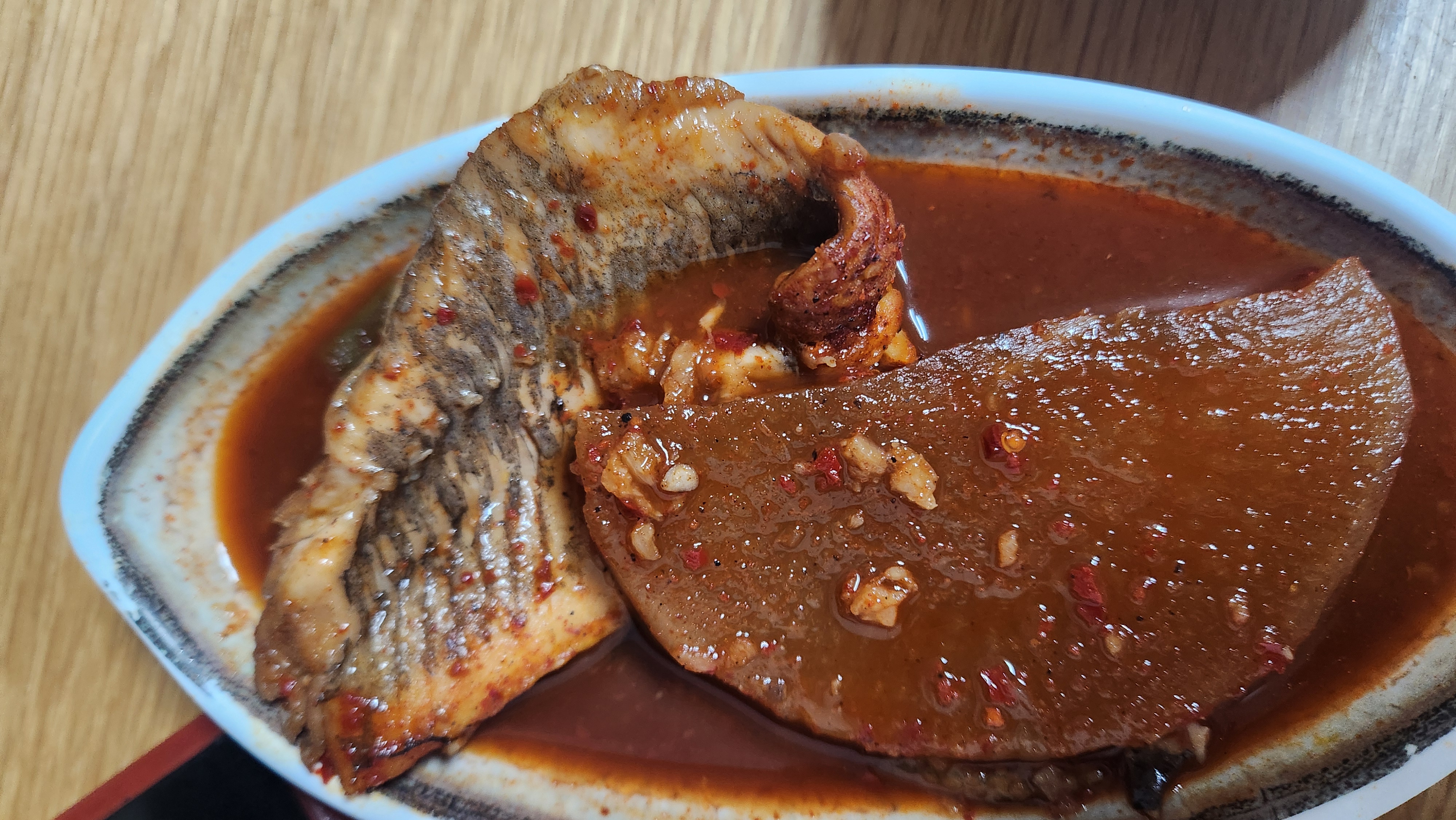 방어내장도 삶아서 나왔는데, 퍽퍽한 저 감은 부위를 빠고는 전브 맛있게 잘 먹었어요. ^^